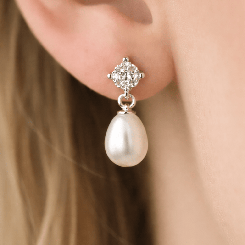 Disse perleøreringene har en ekte ferskvannsperle i dråpeform som fanger lyset med en myk, naturlig glans. Den diskrete glitrende toppen gir et elegant preg, og det lette designet passer like godt til hverdags som til fest.